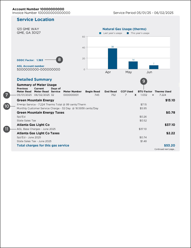 Look here first! This is the most important section, outlining your previous payment and the current amount due, minus any credits you’ve earned. Let’s face it, nobody really likes paying bills, but just know that you're helping the environment with each payment you make!