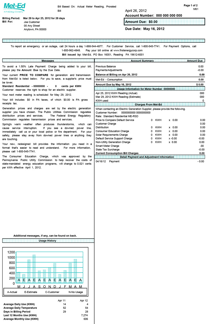 • Your electricity charges are now split into supply charges from us and delivery charges from Met-Ed.