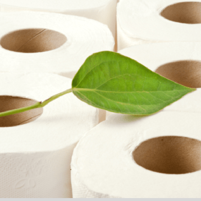 Considera el papel higiénico fabricado con pulpa de bambú o con un alto contenido reciclado y que sea totalmente libre de cloro (totally chlorine-free, TCF) o procesado sin cloro (processed chlorine-free, PCF). Si cada vivienda estadounidense remplazara un solo rollo de papel higiénico de fibra virgen al año por un rollo fabricado con papel 100% reciclado, ¡esto salvaría unos 425,000 árboles al año!