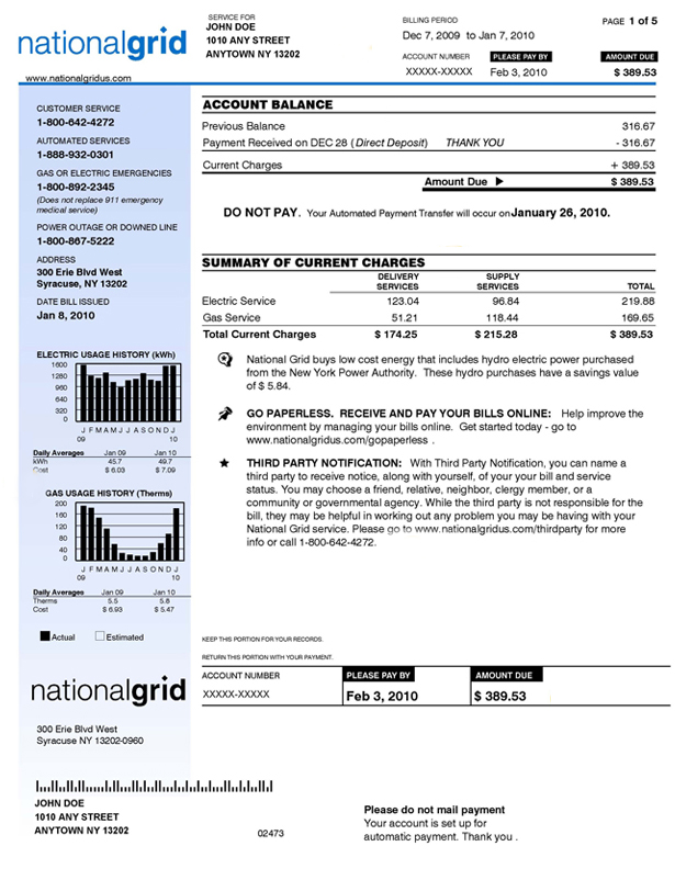 Tus cargos de electricidad ahora están divididos en cargos por suministro de nosotros y cargos por entrega de National Grid. No se te están facturando dos veces.