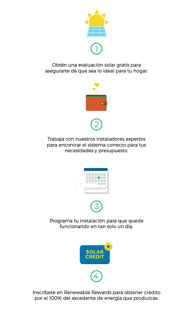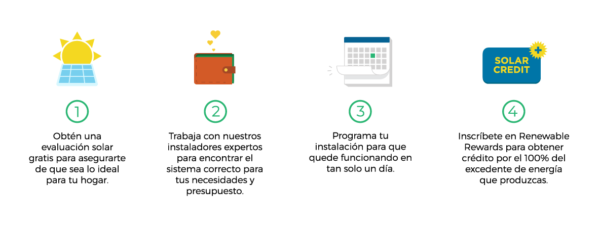 Green Mountain Energy te facilita maximizar tu inversión solar con los planes de recompra Renewable Rewards. Envía el excedente de energía que genere tu sistema a la red y recibe créditos de factura para compensar la electricidad que consumes cuando no brilla el sol. Todo esto está respaldado por energía 100% renovable. Es una forma sencilla de ayudar al planeta y aprovechar al mismo tiempo tus paneles solares.